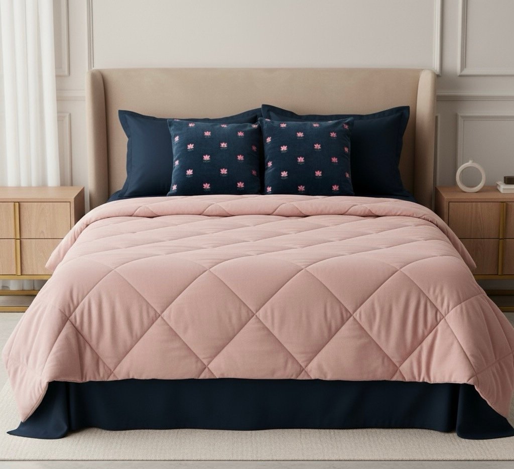 • 1 Ultra-Soft Comforter (90” x 95”) in a soothing pink tone, designed for year-round comfort