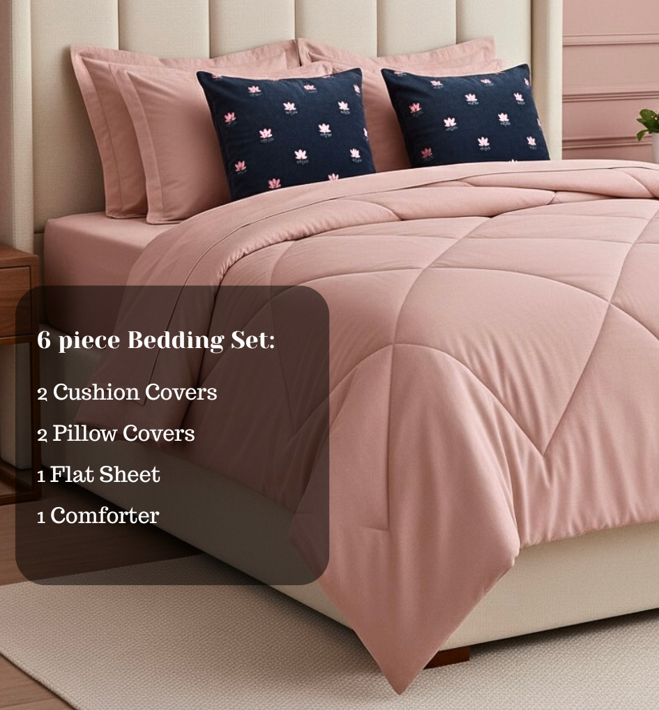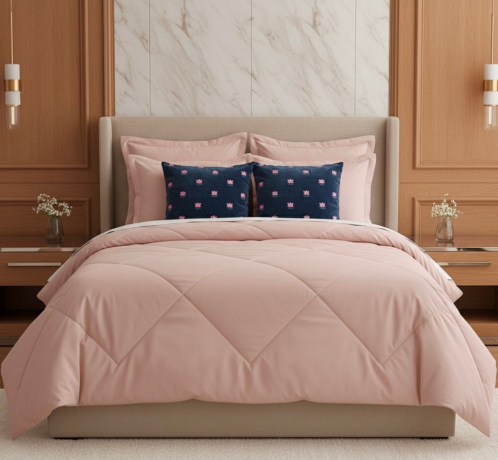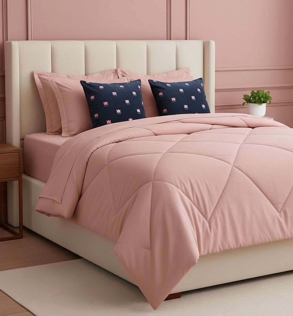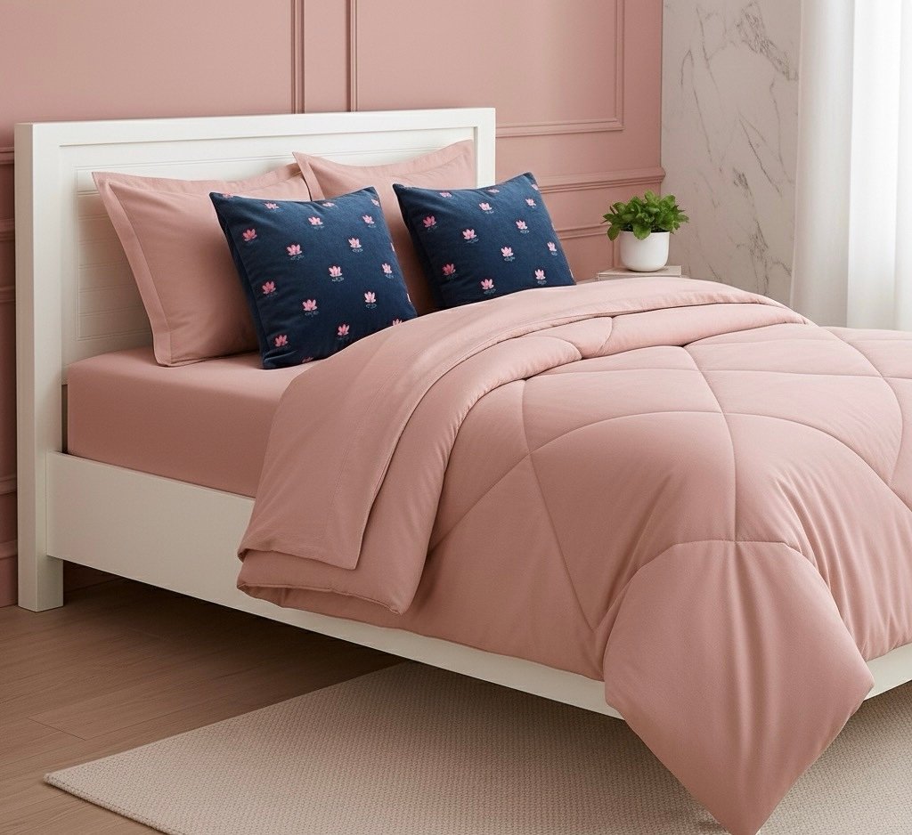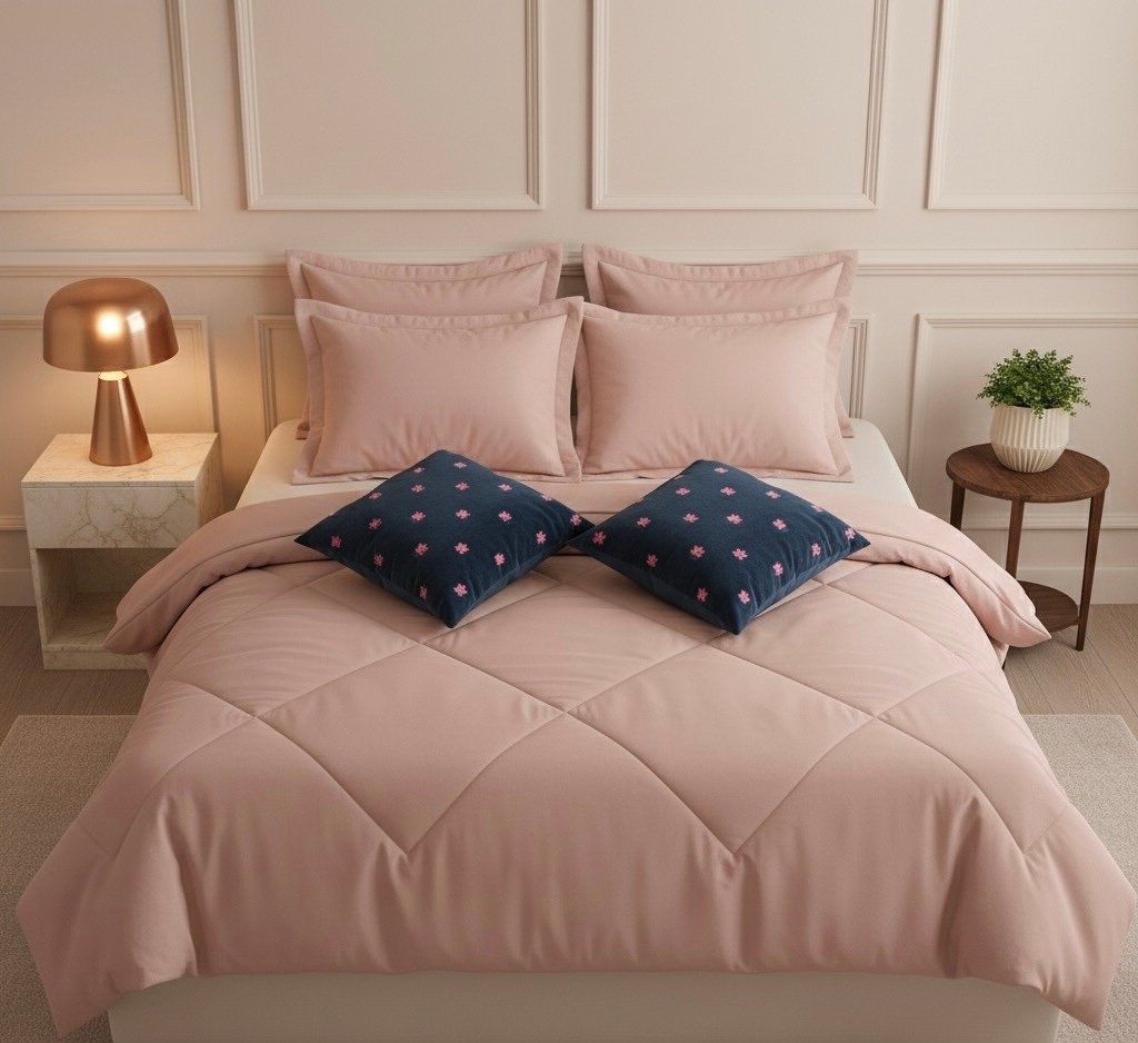 • 1 Ultra-Soft Comforter (90” x 95”) in a soothing pink tone, designed for year-round comfort