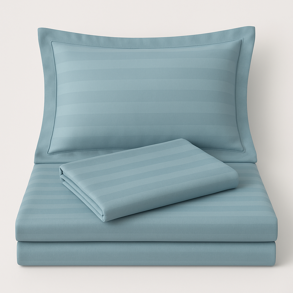 Blue self-striped, 600 TC flat sheet + 2 pillow covers |