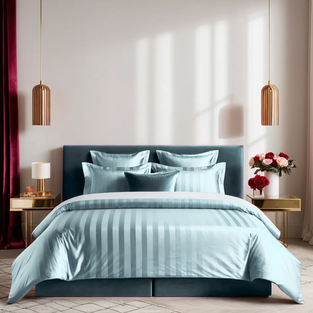Crafted from 600 thread count pure cotton in a soft blue self-striped pattern, offering a smooth, breathable, and hotel-like finish.