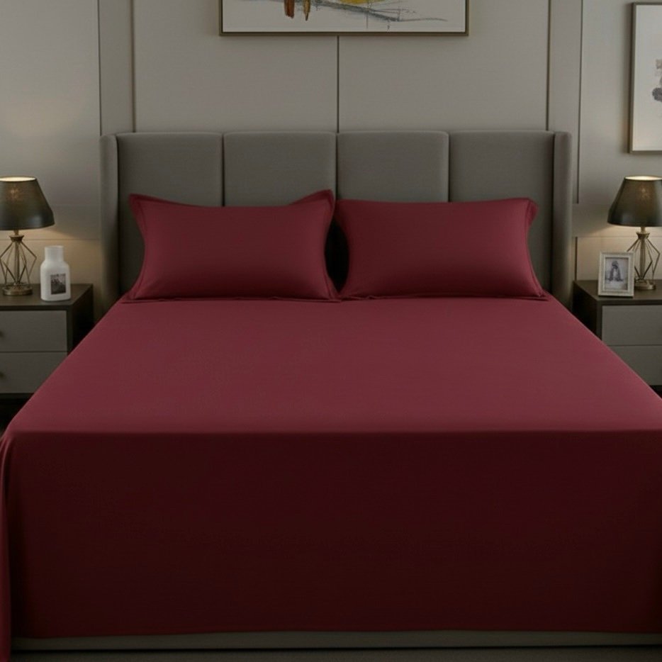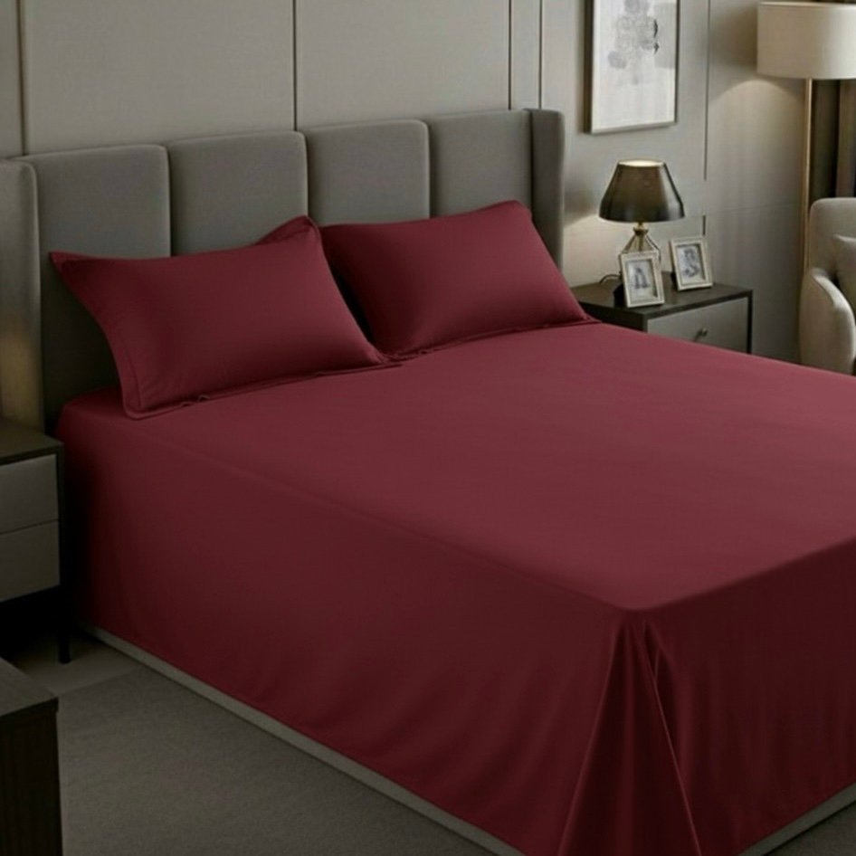 Upgrade your sleep experience and elevate your bedroom aesthetics with our Plain Cotton red Bed Sheet Set. Enjoy the perfect blend of comfort and style every night. Make your purchase today and experience the luxury of AVIS Bedlinen.