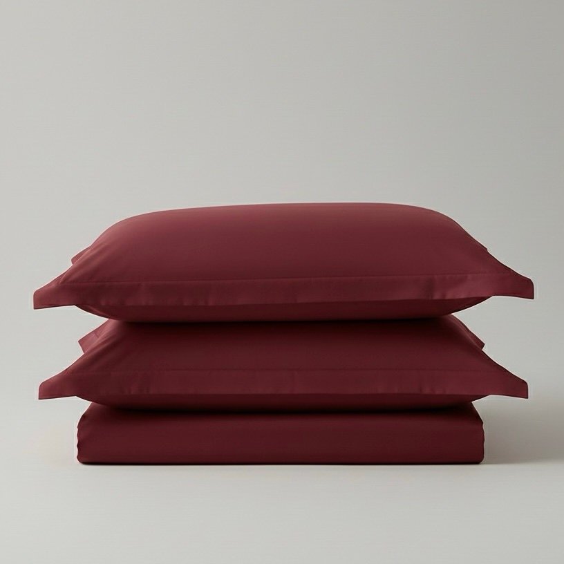 Cherry Red Solid Dark 100% Cotton Bedding Set | King Size fitted sheet | 400TC with 2 Pillow Covers