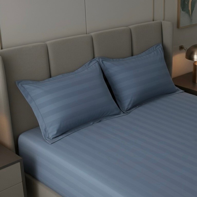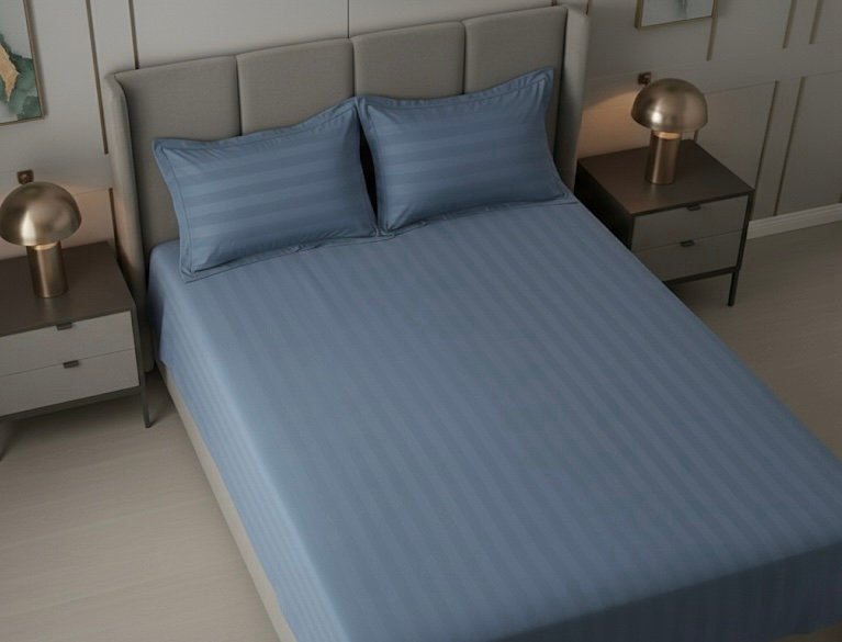 Upgrade your sleep experience and elevate your bedroom aesthetics with our striped Cotton denim blue Bed Sheet Set. Enjoy the perfect blend of comfort and style every night. Make your purchase today and experience the luxury of AVIS Bedlinen.