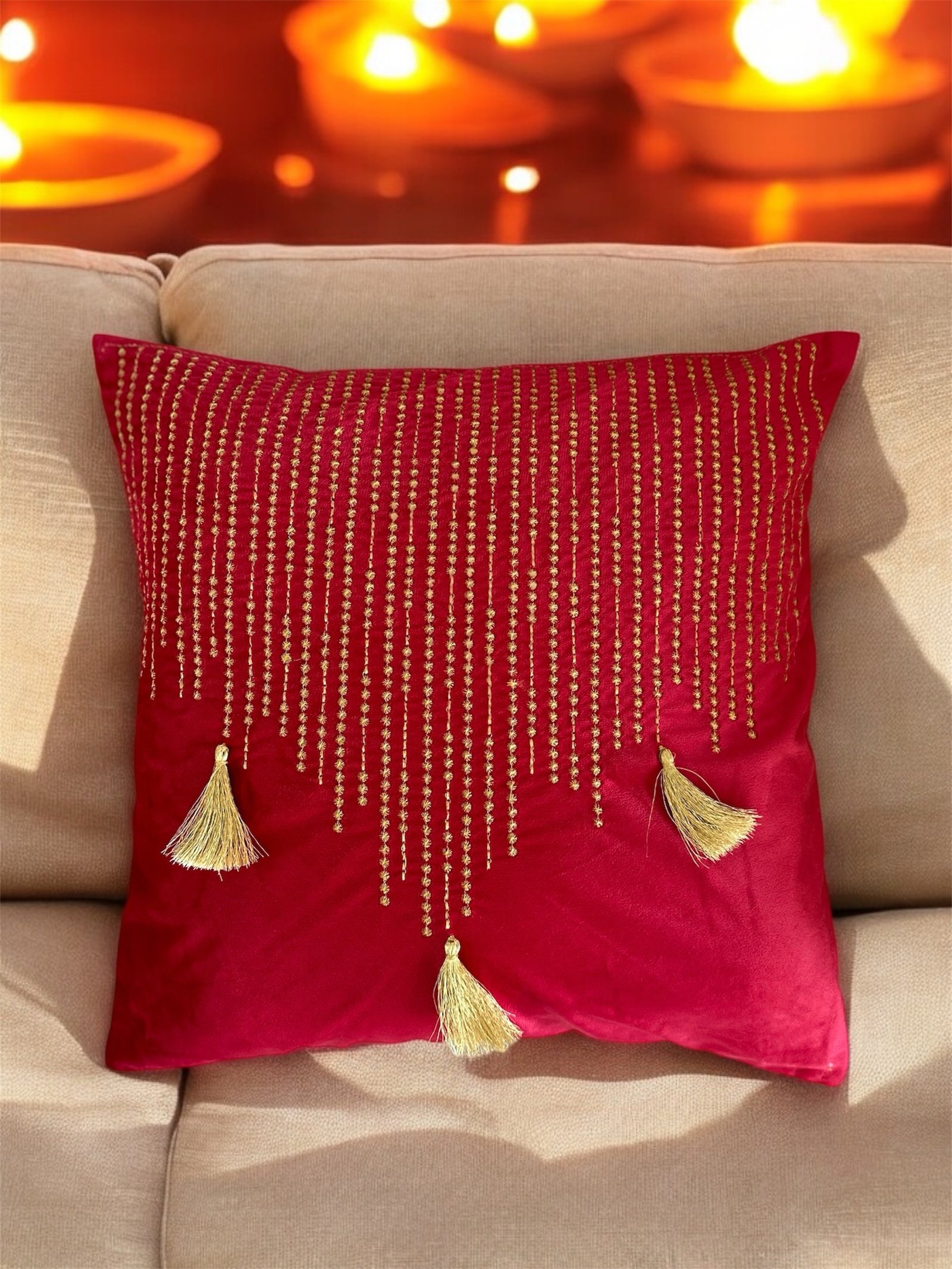 Elevate your decor with our versatile Cushion Cover for Diwali Decor (16″ x 16″):