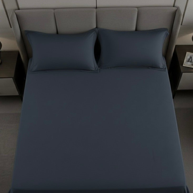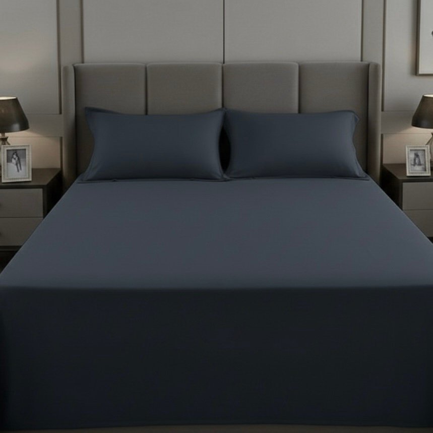 Introducing our charcoal dark collection of Estate blue plain bed sheet designed to infuse energy into your bedroom. Elevate your sleep sanctuary with these cozy and stylish pieces that seamlessly blend comfort and style.