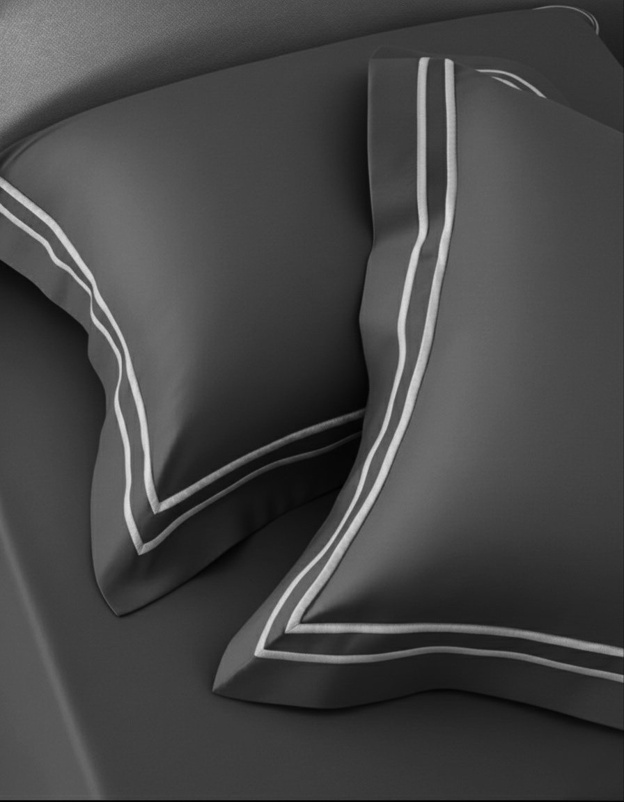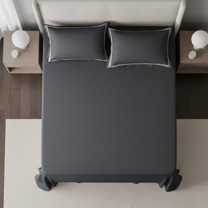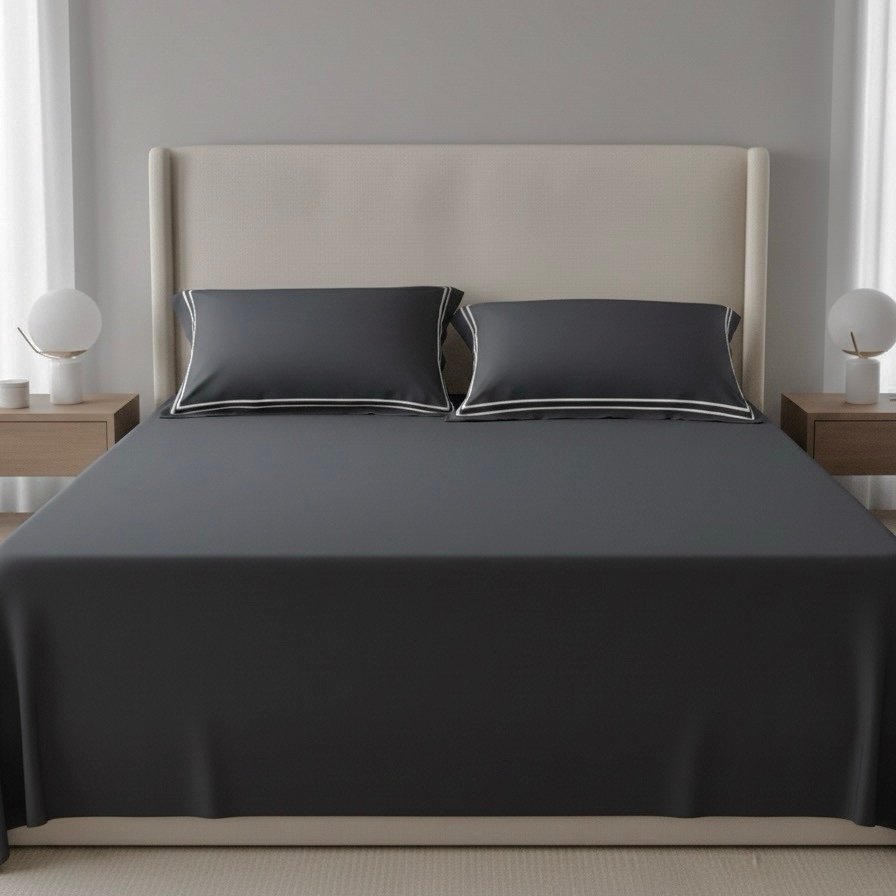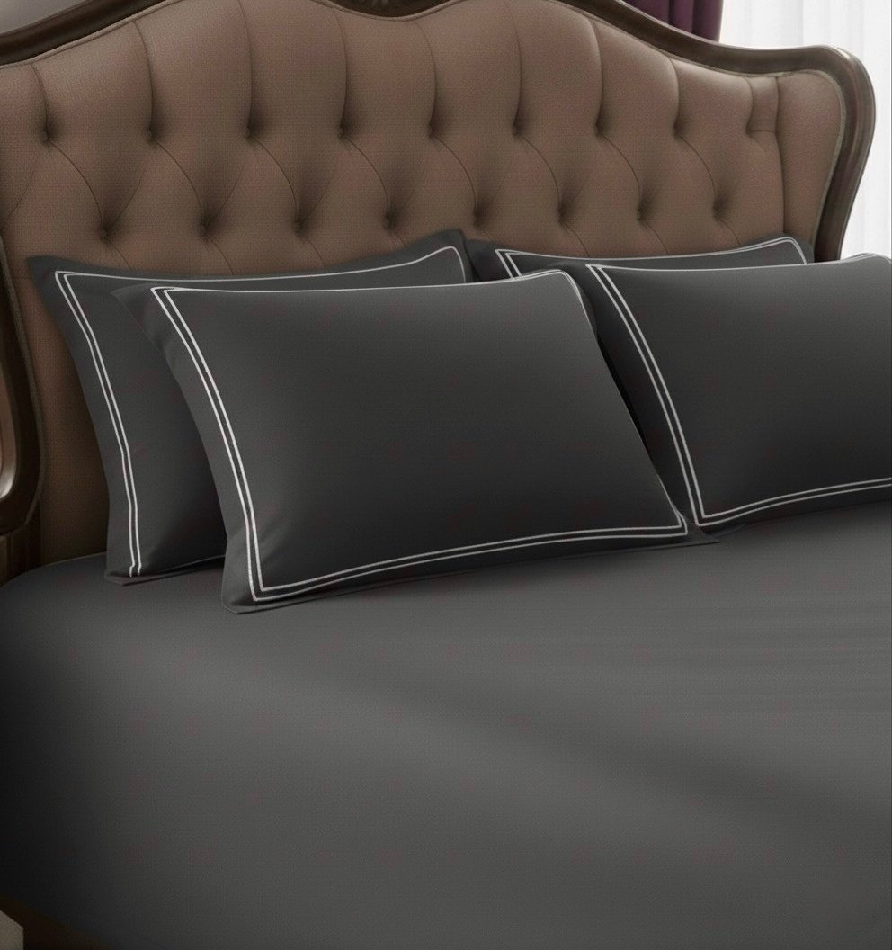Premium Grey 400 TC bed sheet set with soft 100% cotton fabric and elegant double-merrow pillow covers. Smooth finish, long-lasting quality, perfect for modern bedrooms.