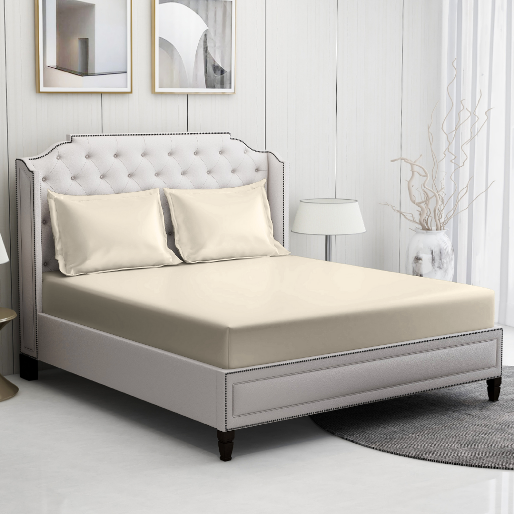 Off White Solid 100% Cotton Bedding Set | King Size 108×108 | 400 TC with 2 Pillow Covers