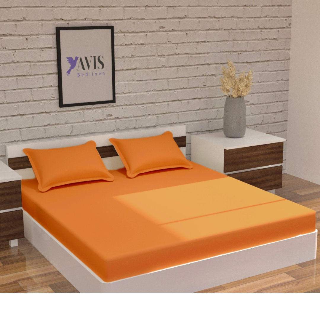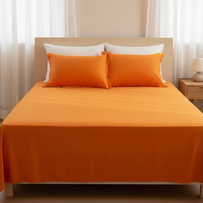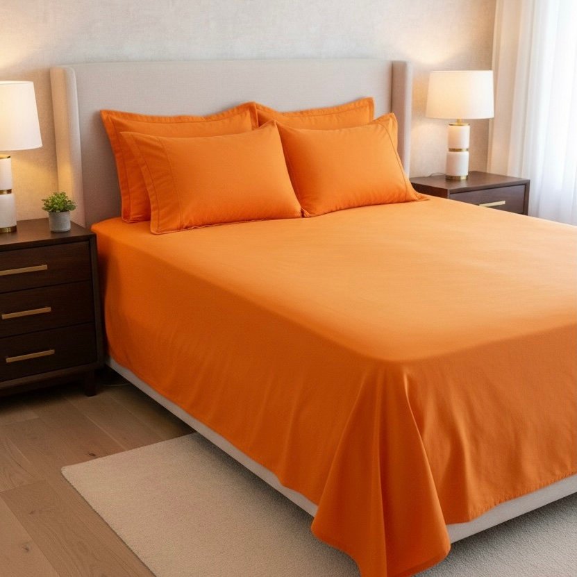 Orange Solid 100% Cotton Bedding Set | King Size 108×108 | 400TC with 2 Pillow Covers