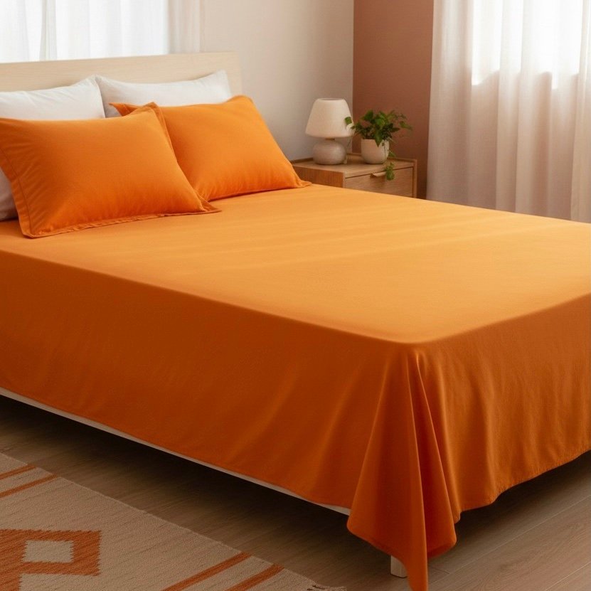 Our Bright neon Orange Solid Bedsheet Set is not for the faint-hearted — it’s for those who love bold energy, fresh starts, and pure cotton comfort.