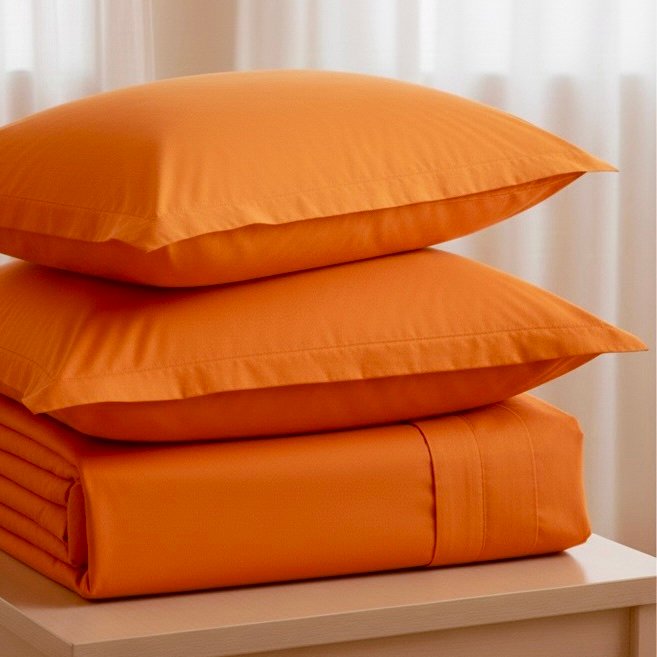 1 review for Orange Solid 100% Cotton Bedding Set | King Size 108×108 | 400TC with 2 Pillow Covers