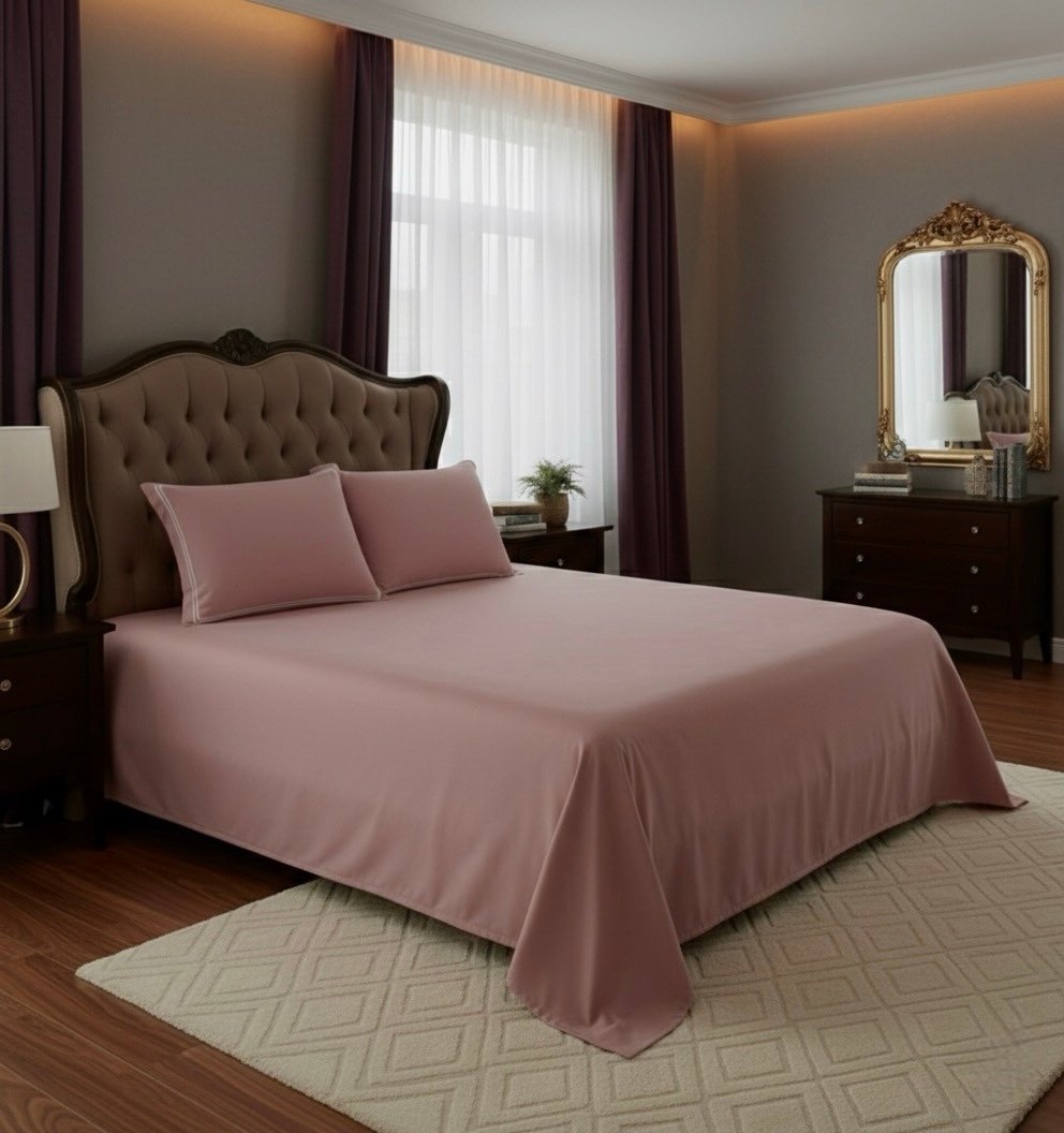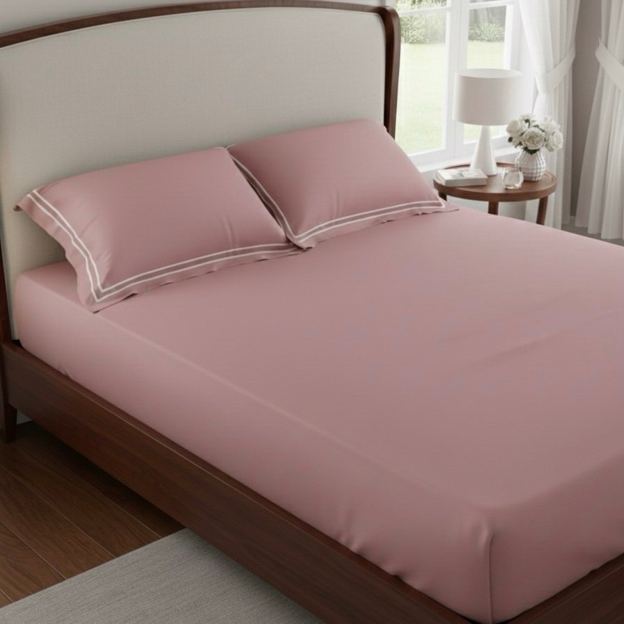 Rose Quartz 600 TC Bed Sheet with Double Merrow on 2 Pillow Covers