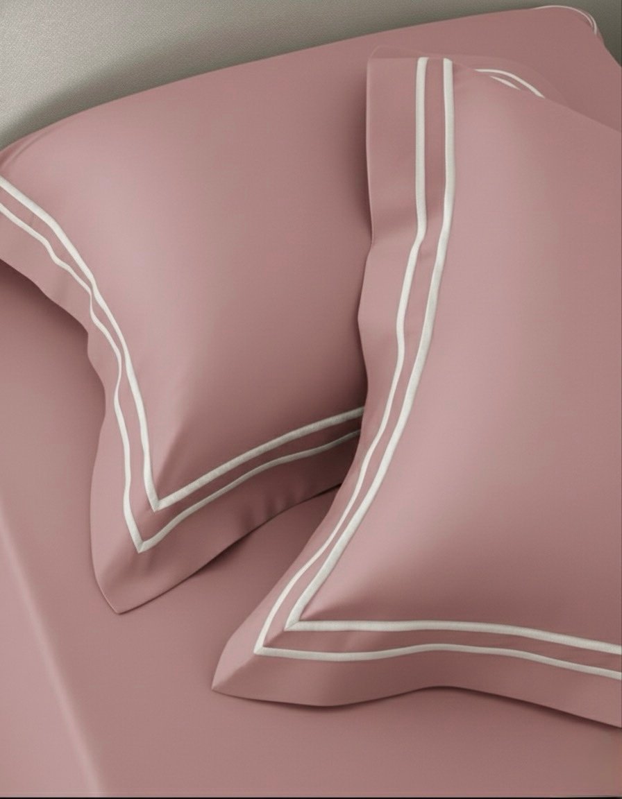 Premium Pink 600 TC bed sheet set with soft 100% cotton fabric and elegant double-merrow pillow covers. Smooth finish, long-lasting quality, perfect for modern bedrooms.