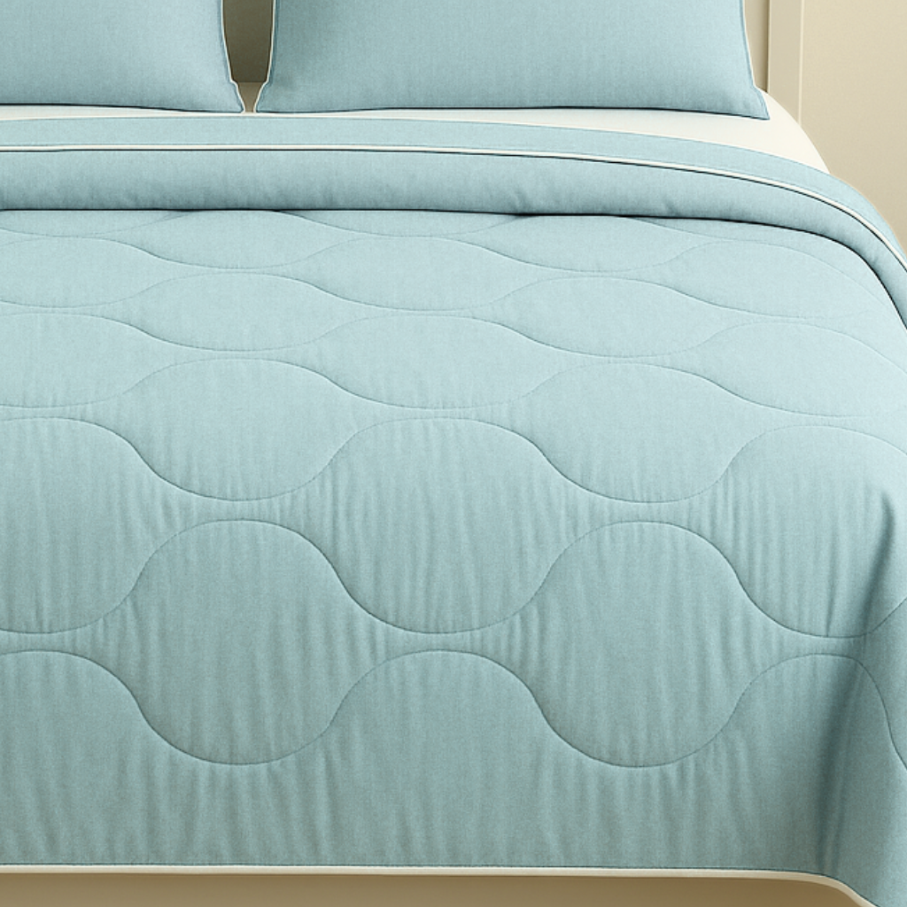Sea Green Pure Cotton Comforter – 95 x 105” | Wavy Stitch Pattern with White Piping