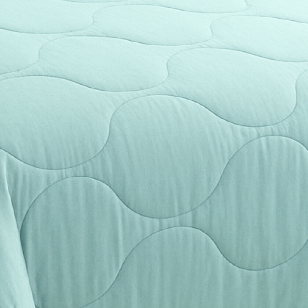 Sea Green Wavy Comforter with White Piping