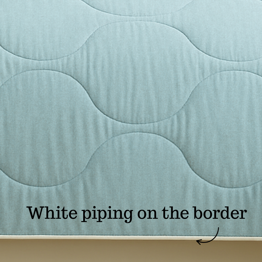 Delicately edged with white piping, this sea green beauty balances simplicity with sophistication, elevating your bedroom look instantly.