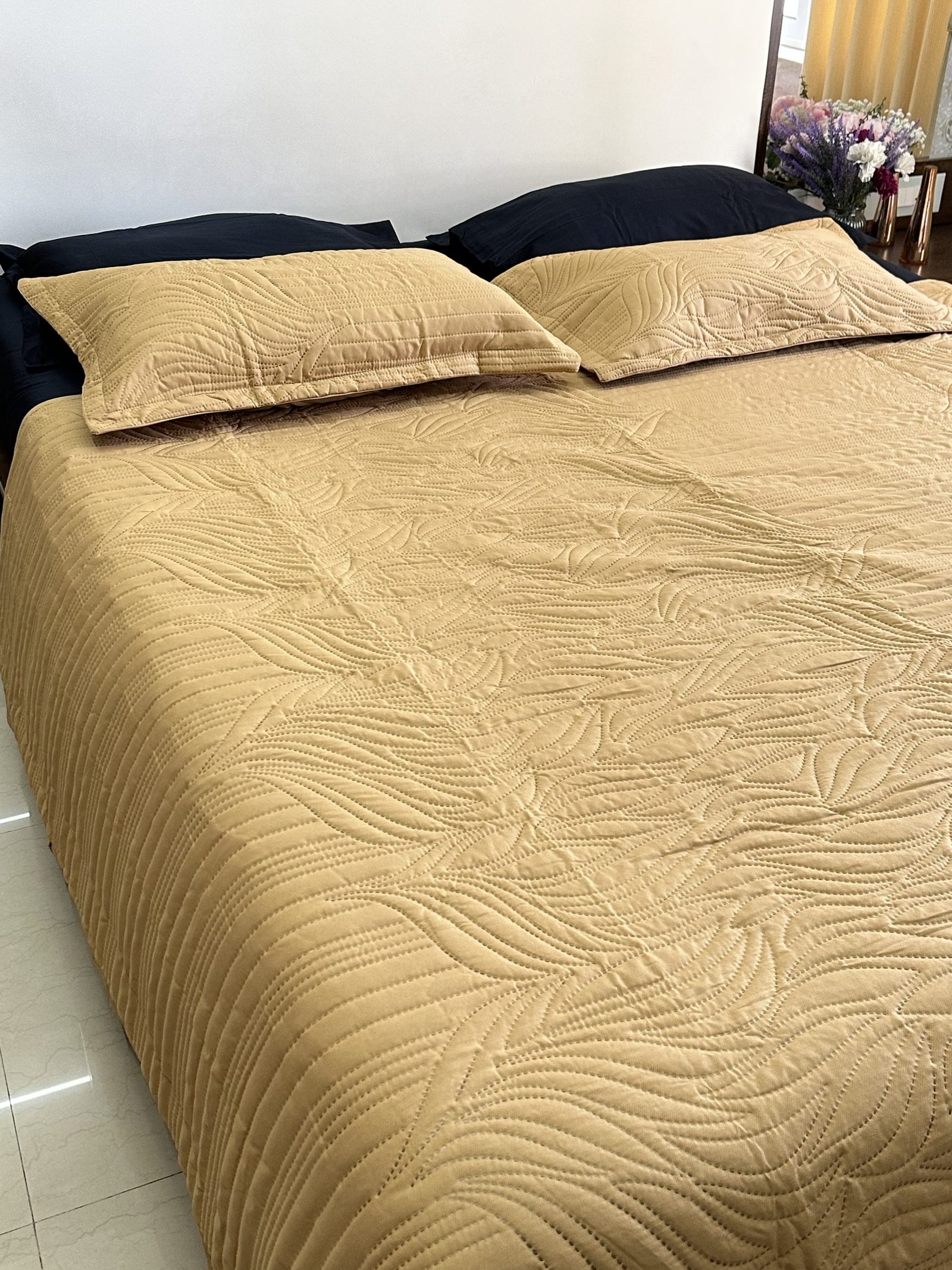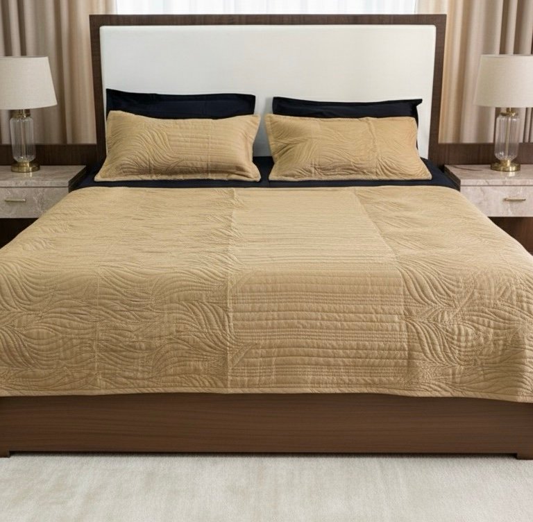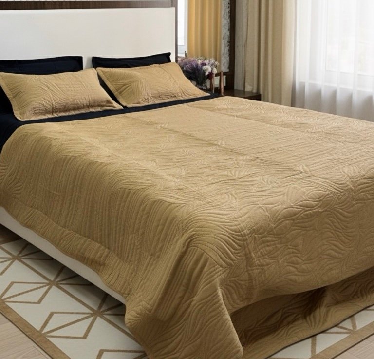 Introducing the epitome of cozy elegance – our stunning quilted bedspread. As you lay your eyes upon it, you’ll be captivated by the intricate stitching that adorns the plush fabric, creating a mesmerizing display of patterns that adds a touch of refinement to any bedroom.