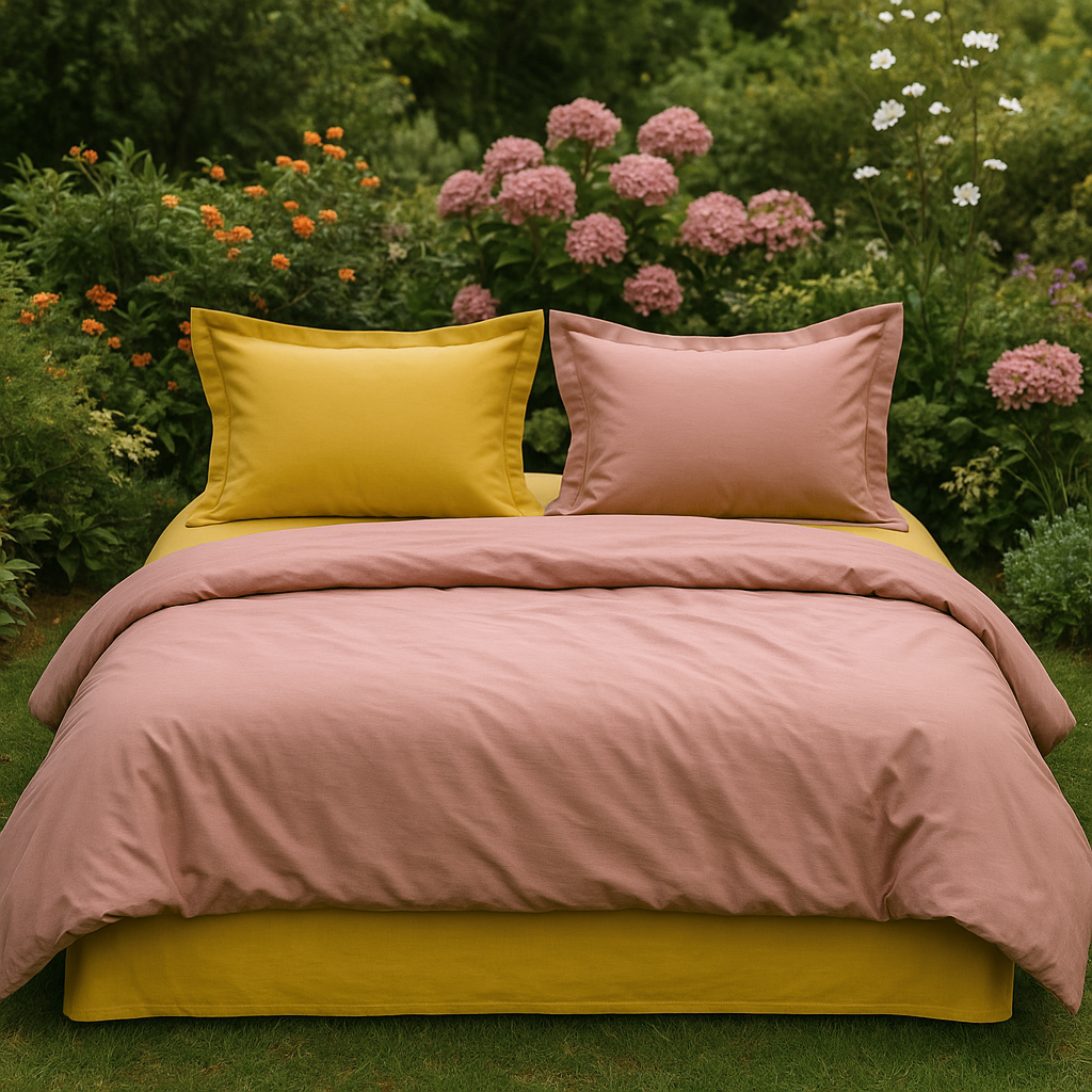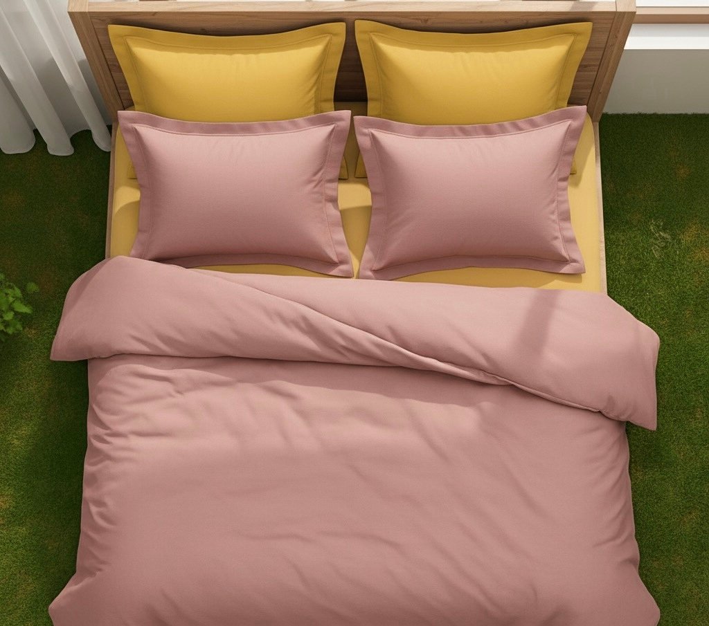 Premium Cotton Bedding Set – Yellow pink (King Size)